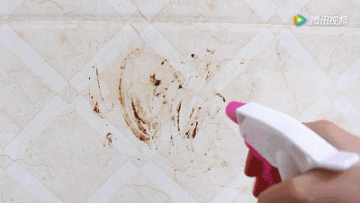 厨房的墙壁上沾染了一块大大的污渍,没关系,用它喷一喷,污渍自动往下掉,去污效果特别好。